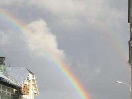Dzień bez zajęć, rano trochę nauki, porządki w pokoju potem biegiem na uczelnie posurfować trochę po sieci. Wracając do akademika mam okazje zobaczyć wspaniałą tęcze, a właściwie nie jedna tęcze a kilka jedna nad druga. Niestety na zdjęciach widać tylko podwójna. Wieczorem razem ze znajomymi z uczelni wybraliśmy się zobaczyć Jyväskyle nocą i na "happy hour" do "Sohwi". Przed akademikiem spotykamy doktorantkę z Rumuni, studiująca na Krecie i takim powiększonym gronem uderzamy na miasto. Najpierw nasz pub i ulubiony napój czyli Upcider (coś jak oranżada tylko odrobinę wzmocniona). Następnie długi spacer najstarsza częścią Jyväskylä wśród mnóstwa klubów i ogródków piwnych. Wracając mijamy sklep sportowy z gigantycznym plecakiem. Nic czas iść spać jutro intensywny dzień.